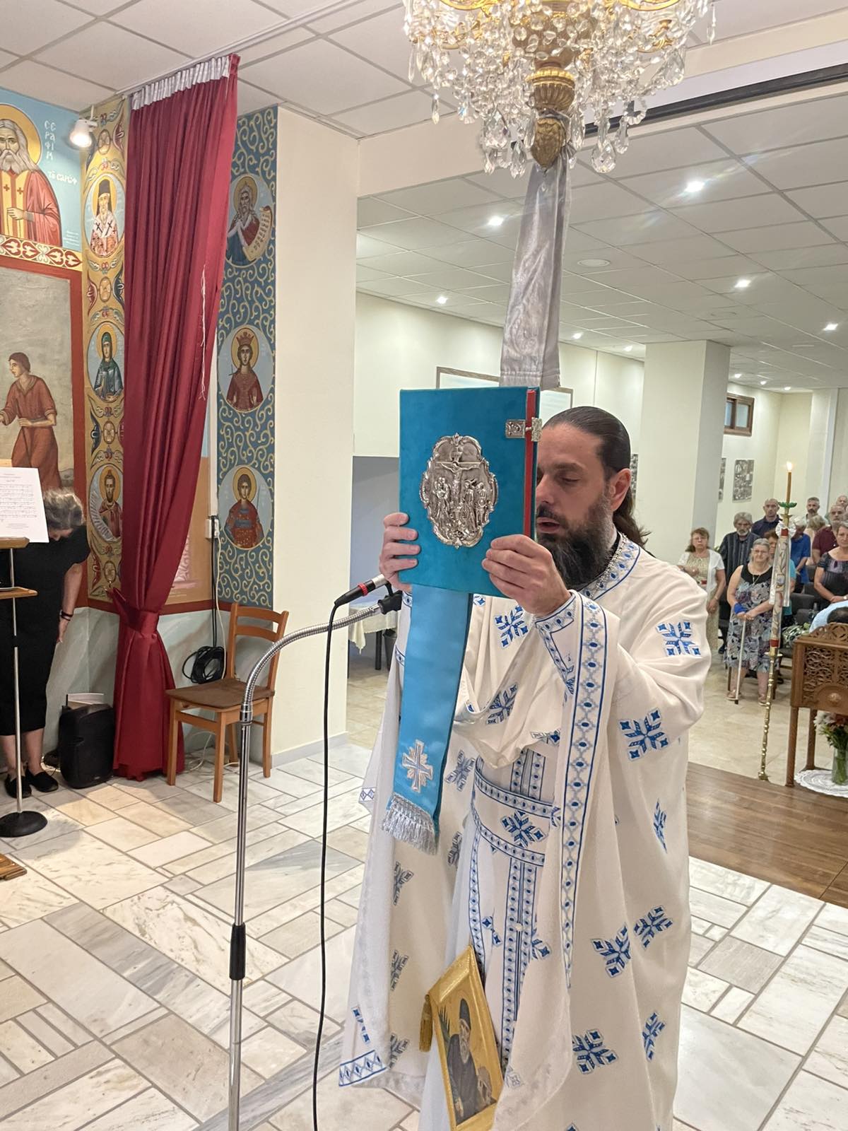 Το ἀπόγευμα τῆς 12ης Ἰουλίου τελέσθηκε ὁ Ἑσπερινὸς καί ἡἹερὰ Παράκληση πρὸς τὸν Ὅσιο Παΐσιο καὶ τὸ Ἱερὸ Μυστήριο τοῦ Εὐχελαίου ἐπὶ τοῦ Τιμίου Ξύλου.