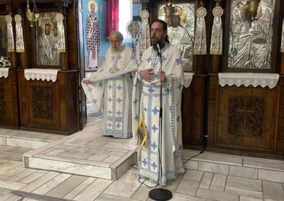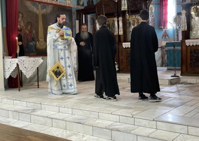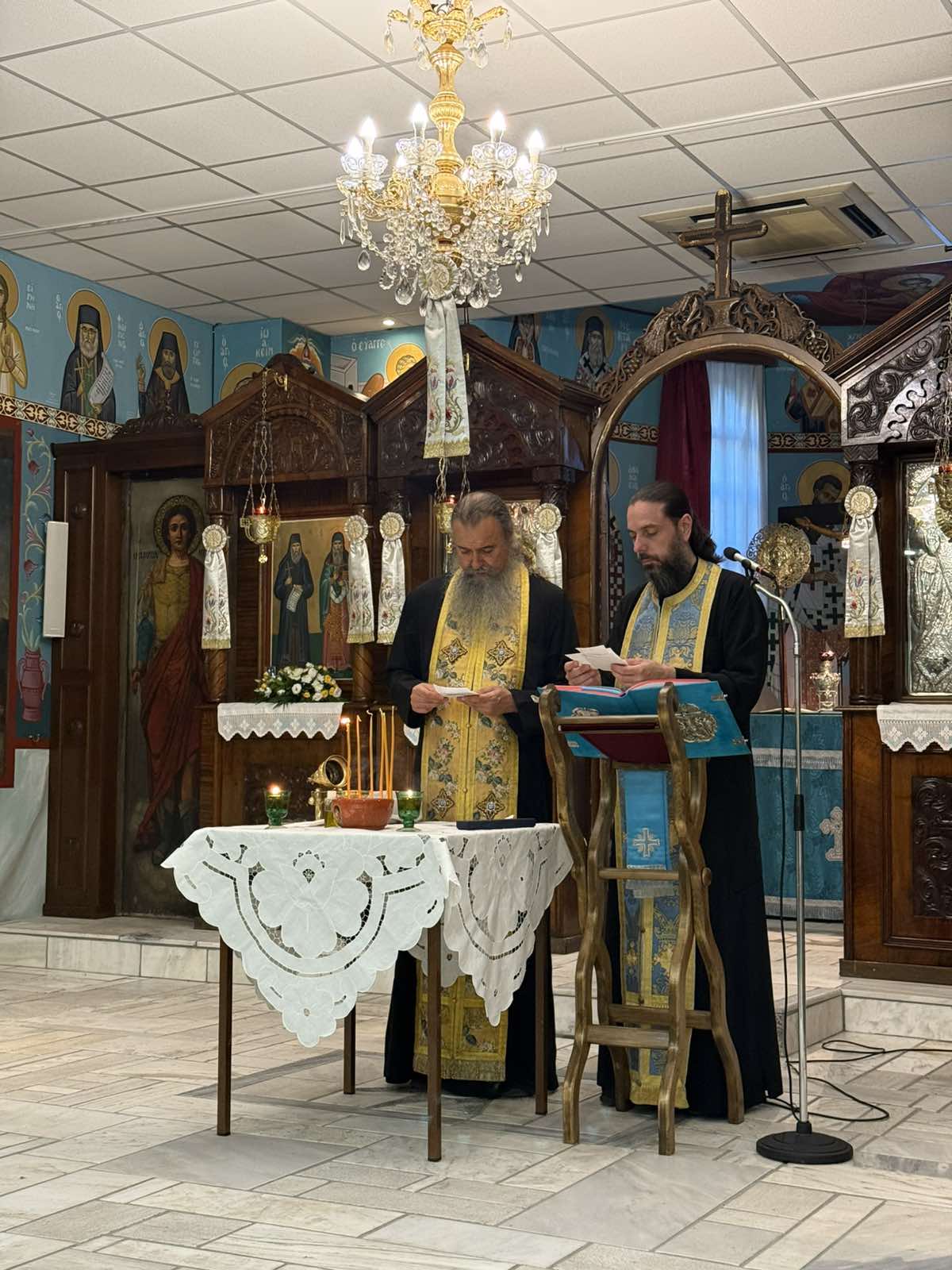 Ἀνήμερα τῆς ἑορτῆς τοῦ Ὁσίου τελέστηκε ὁ Ὄρθρος καὶ ἡ Πανηγυρικὴ Θεία Λειτουργία ὑπὸ τῶν Αἰδεσιμ. ἱερέων Θεολόγου Ἀποστόλου καὶ Σωτηρίου Ἀλεβιζάκη.